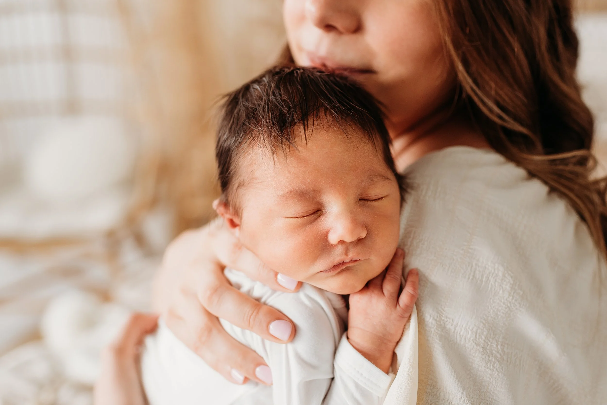Let go. Let go of control, let go of your expectations, and instead, just let it happen. You don’t have to be perfectly styled or have a picture-perfect home to get amazing newborn photos. Yes, your baby might cry! In that case, we improvise and go with the flow.